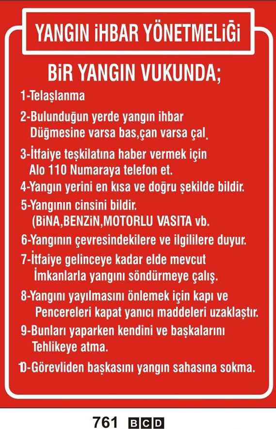 Ayrıca 19.12.2007 tarihinde 26735 sayılı Resmi Gazetede yayınlanan “Binaların Yangında Korunması Hakkında Yönetmelik” işletmelerin Yangın Güvenliği Ekiplerini oluşturması ve bunlara yangın eğitimi ve uygulamalı yangın tatbikatlarının senede en az 1 kez yapılmasını zorunlu hale getirmiştir.